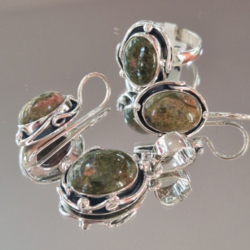 сребро - 925.камък -рубин в зоисит.дължина - 4,0 см.13,14 гр...